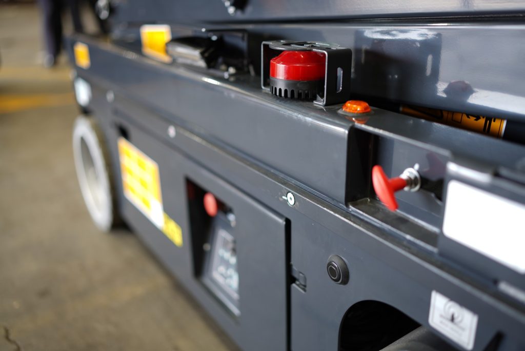 The LS0507EM comes equipped with a range of standard features, including Standard longitudinal forklift sprocket hole, charging protection system, standard lateral forklift sprocket hole, emergency stop button, adjustable extension platform, proportional control, active pothole protection, acousto-optic warning lights, all motion alarm, drivable at full height, emergency lowering system, folding guardrails, drop anti-clip function, over tilt protective system, and a side anti-collision function.